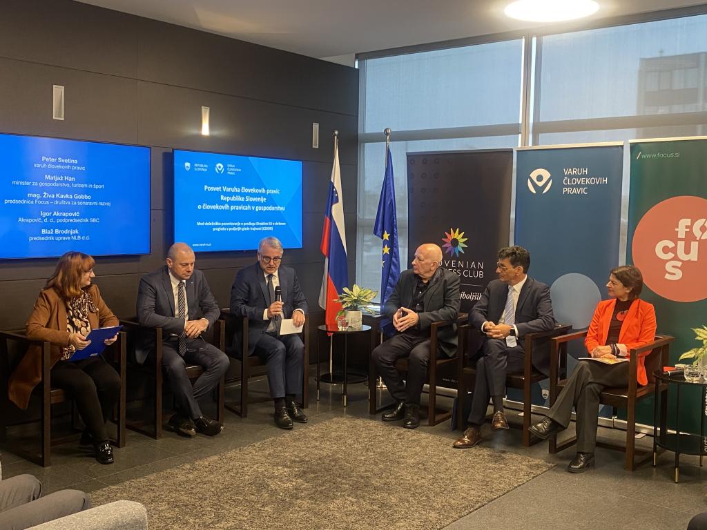 Human Rights Ombudsman and representatives of the state, industry and business, and civil society at a panel discussion call for a more responsible and sustainability-oriented economy