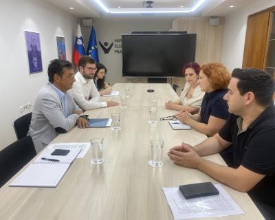 On 20 July 2023, the Human Rights Ombudsman Peter Svetina and his Deputy Miha Horvat welcomed representatives of the Albanian national community for a visit. They discussed the community’s cultural rights, the issue of education, the inclusion of migrant children in schools, and the media reports on the Albanian national community with the intercultural mediator and secretary of the Union of Cultural Societies of Albanians in Slovenia Vera Haliti, a representative of Albanians in the Council of the Government of the Republic of Slovenia for issues of national communities of the peoples of the former SFRY in the Republic of Slovenia Dr Alma Bejtullahu, and vice-president of the Union of Cultural Societies of Albanians in Slovenia Besnik Ademi.