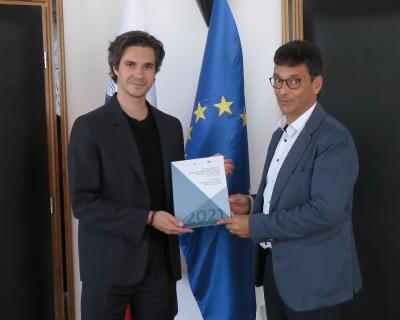 The Human Rights Ombudsman, Peter Svetina, invited the Minister of Labour, Family, Social Affairs and Equal Opportunities, Luka Mesec, to the Ombudsman’s premises and presented him with the Annual Report for 2021. During the conversation, the Ombudsman, the Minister and the State Secretary of the Ministry, Simon Maljevac considered a range of topics that fall within the very broad scope of the Ministry's work.