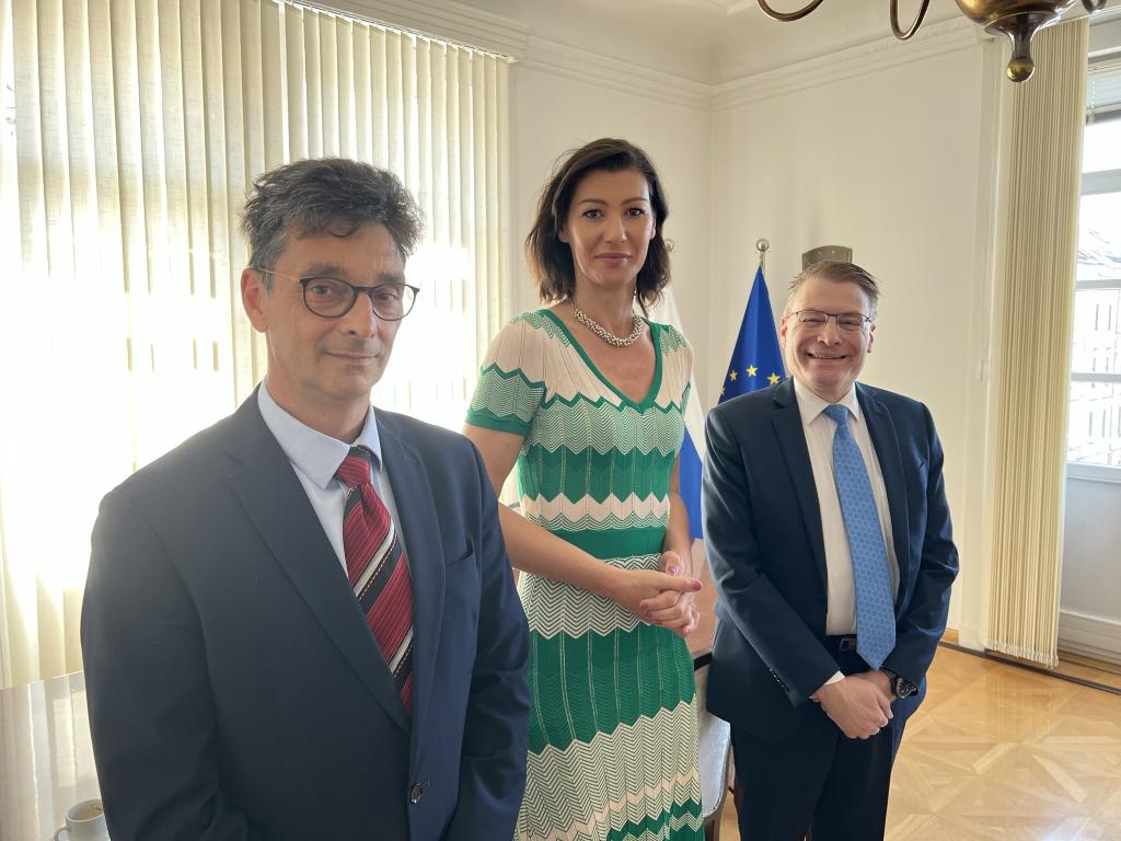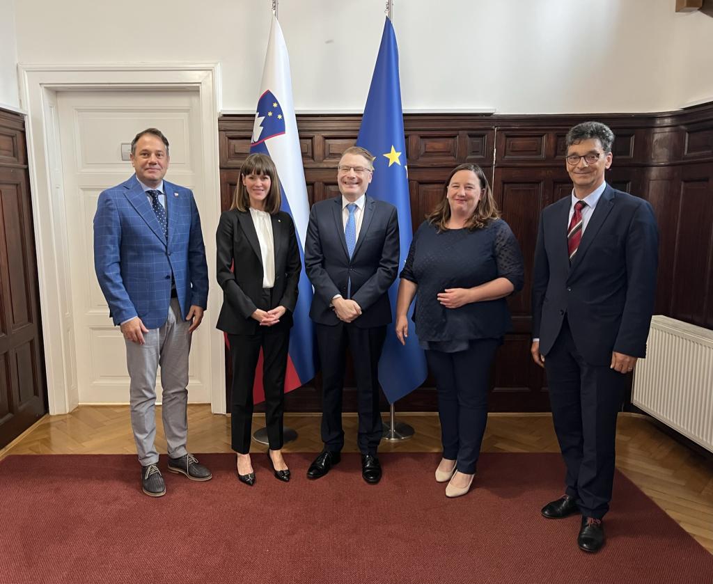 In the company of Ombudsman Svetina, President Field was also received en/news/news/ombudsman-svetina-visited-the-institution-hisa-dobre-volje-with-the-president-of-the-republic-of-slo/ and the President of the National Assembly of the Republic of Slovenia Urška Klakočar Zupančič, MSc. Both ombudsmen also met with the Minister of Justice Dr Dominika Švarc Pipan, Minister for Slovenians in Neighbouring Countries and Slovenians Abroad Matej Arčon and The President of The Commission for the Prevention of Corruption Dr. Robert Šumi.