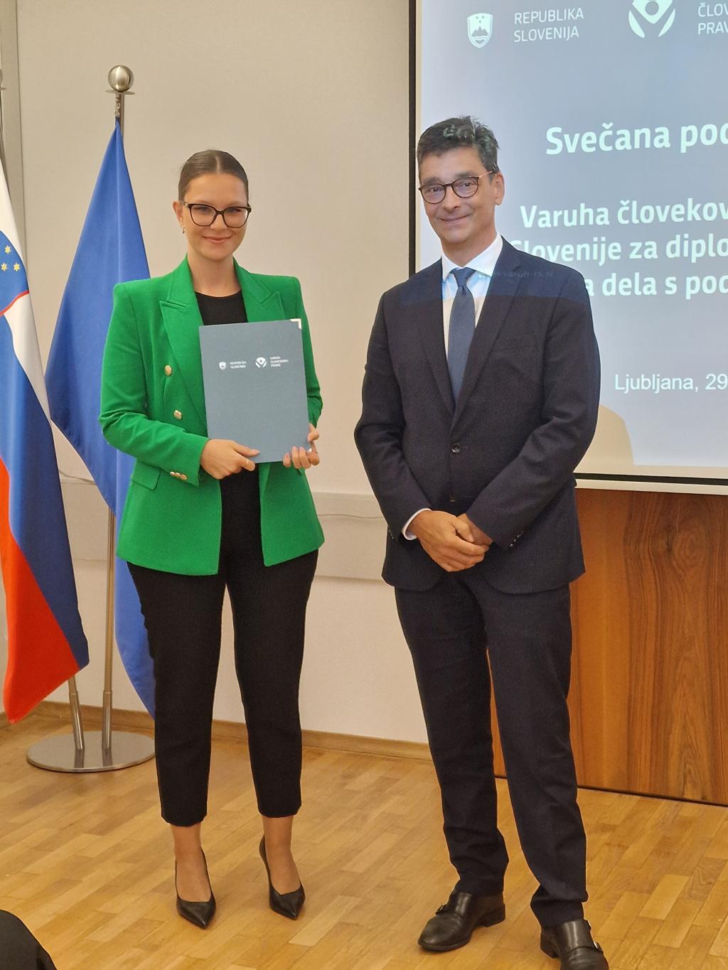 He stressed that the competition was just one step towards promoting research on themes related to respect for human rights. "Respect for human rights and fundamental freedoms is a basic humanist commitment to see and respect our fellow human beings in all their integrity and to act when their rights are violated. However, in order to live up to this commitment, it is essential that we learn about, analyse and become familiar with human rights issues. Learning and raising awareness about them is only the first step towards an inclusive society," said Ombudsman Svetina at the first award ceremony for human rights works. He expressed the hope that the competition would become a tradition and that educational institutions would further encourage students and doctoral candidates to contribute to the protection of human rights and fundamental freedoms. "Although it sometimes seems so, rights are not self-evident. Centuries of struggle and striving for them can be destroyed in an instant, so it is essential that with each new generation, the values that come with knowledge of human rights be rethought and cemented into the mindset of society, so that healthy progress, rather than regression, takes place," the Ombudsman stressed.