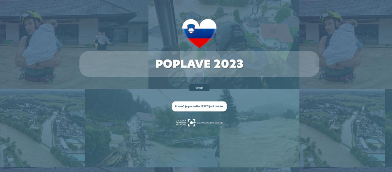 Po uničujočih poplavah, ki so prizadele Slovenijo, je Urad Republike Slovenije za zaščito in reševanje vzpostavil enotno vstopno točko za nudenje pomoči vsem prizadetim. Vzpostavljena je https://poplave2023.urszr.si/ - -new-window "Opens internal link in current window", preko katere lahko organizacije in posamezniki nudijo svojo pomoč.
