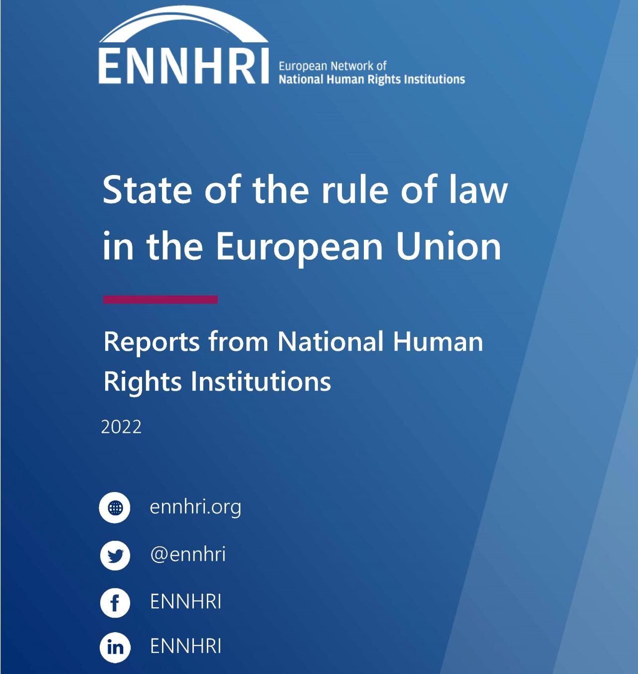 Prispevek Varuha človekovih pravic o stanju vladavine prava v Sloveniji, ki je del poročila ENNHRI, je v angleškem jeziku dosegljiv tukaj. Poročilo o Sloveniji vsebuje tako pregled stanja kot predloge konkretnih priporočil za izboljšanje stanja. Ta izhajajo iz obravnavanih zadev in zadev, ki jih je Varuh obravnaval na lastno pobudo ter priporočil, ki jih je Varuh naslovil na različne institucije in so tudi del letnega poročila Državnemu zboru RS.