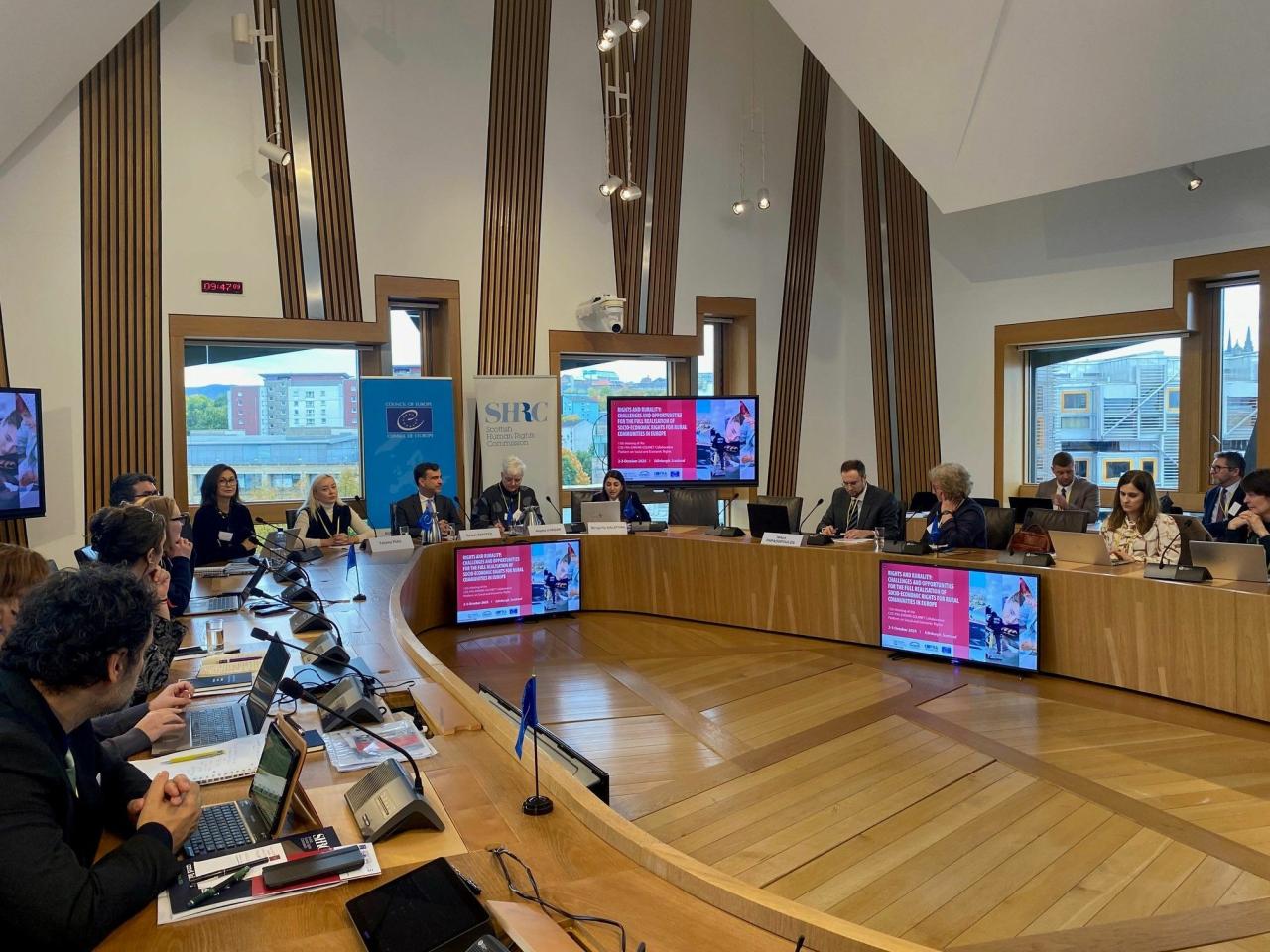 Dogodek, ki ga je organiziral Svet Evrope v sodelovanju s Škotsko komisijo za človekove pravice, je bil osredotočen na uresničevanje socialnih in ekonomskih pravic v ruralnih območjih, s poudarkom na izzivih, s katerimi se soočajo podeželske skupnosti, ter na uporabi obstoječih pravnih okvirov — zlasti Evropske socialne listine — v teh kontekstih.