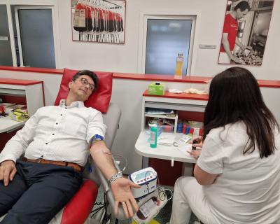 Varuh s sodelavkami in sodelavci z darovanjem krvi za večjo solidarnost v družbi