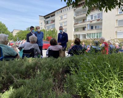 Na domskem dvorišču sta se varuh in minister kratko pogovorila tudi s stanovalci, ki so se danes prvič nekoliko bolj svobodno družili. Povedali so, da so bili večinoma zadovoljni z domsko oskrbo v času trajanja ukrepov ob epidemiji, da pa so pogrešali predvsem neposredne stike s svojci, druženje in svojo vsakdanjo rutino.