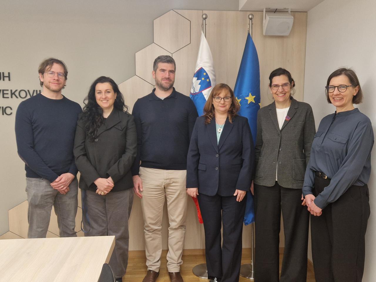 Varuhinja človekovih pravic dr. Simona Drenik Bavdek se je z namestnikom Miho Horvatom in s sodelavcema danes, 20. 3. 2026, srečala s predstavnicama Visokega komisarijata Združenih narodov za begunce (UNHCR) Heleno Behr, vodjo pravne službe pri Predstavništvu UNHCR za Srednjo in Jugovzhodno Evropo ter sodelavko za področje zaščite Romano Zidar.